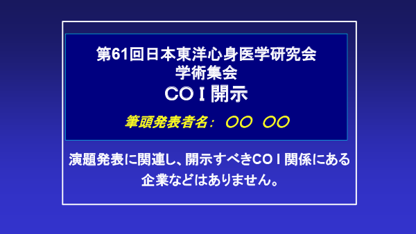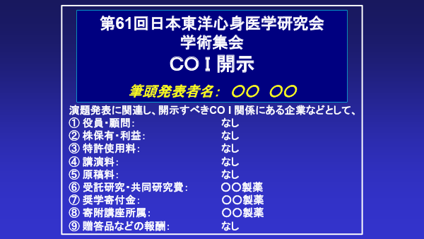 演題発表スライドには必ずCOI開示を含めてください。